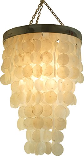 GURU SHOP Lampada da Soffitto/Lampada da Soffitto, Lampada del Soffitto, Lampada Della Shell Fatta di Centinaia di Capiz, Piatti Della Madreperla - Modello Tikal, Fettediconchiglia, 66x40x40 cm