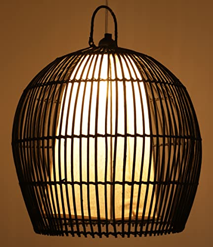 GURU SHOP Lampada da soffitto/plafoniera, realizzata a mano in materiale naturale, rattan, cotone, modello Camilio, nero, 37 x 37 x 37 cm, lampade a sospensione in materiali naturali