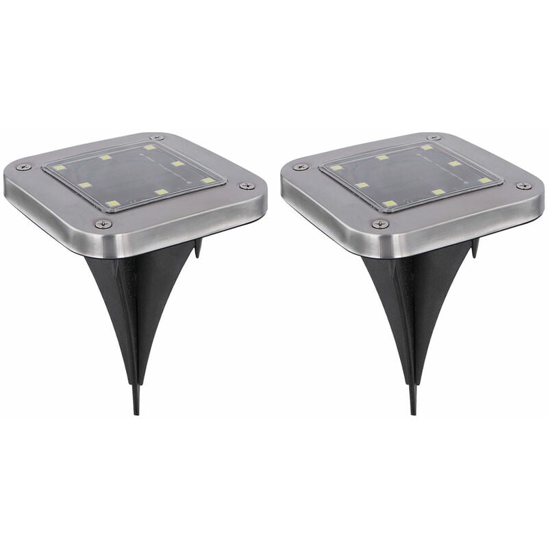 Descrizione Questa fantastica luce solare colpisce per il suo bel design. Un alloggiamento rettangolare in acciaio inossidabile (10x10 cm) con un circuito stampato a LED che emette una luce bianca fredda da 6000 Kelvin e ha un grado di protezione IP44 contro gli schizzi d'acqua sporge da una punta a terra nera opaca. Grazie alle celle solari integrate, che caricano una batteria incorporata, questa lampada può essere posizionata senza un collegamento di alimentazione. Questa luce solare si carica durante il giorno ed emette la luce immagazzinata fino a 8 ore quando fa buio. L'illuminante è installato permanentemente nella lampada. Nella fornitura sono incluse due luci. Particolare lampada • Tipo di apparecchio: apparecchio a innesto • Materiale: acciaio inossidabile, plastica • Colore: argento, nero • Grado di protezione: IP44 • Interruttore • Pacco batterie • Tempo di combustione: 6-8 ore • Lunghezza x larghezza x altezza in cm: 10x10x13 • Prese: 1x LED • Colore chiaro: bianco freddo