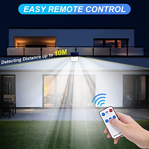 Lampada Solare da Esterno, [2 pezzi] 118 LED Luci Solari da Esterno con Sensore di Movimento e Telecomando, Angolo di illuminazione di 180°, 3 Modes, IP65 impermeabile, Lampada solare con cavo da 5m