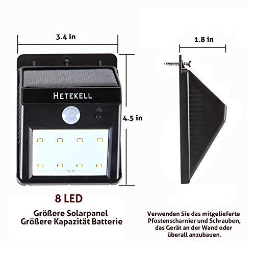 Lampada solare da esterno con sensore di movimento, 8 LED impermeabile, e senza fili Lampada con Heller illuminazione per giardino, cortile, scale. Auto On/Off - Senza Strumenti richiede, 4 St¨¹ck