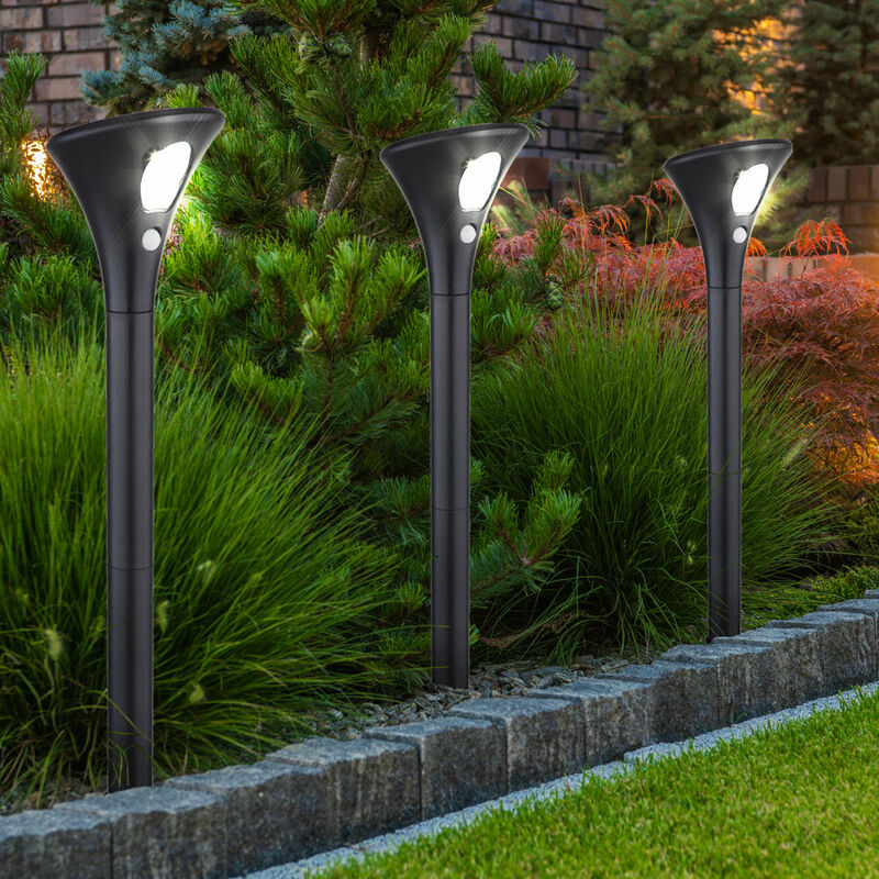 Descrizione Questa lampada solare è una lampada certificata IP44 protetta dagli spruzzi d'acqua ed è quindi predestinata per l'uso esterno. Questa lampada alta 62 cm è dotata di una sorgente luminosa a LED che illumina l'area selezionata con una luce bianca fredda. Al crepuscolo, la lampada passa alla prima modalità di illuminazione e si illumina con una luce debole. Se il rilevatore di movimento viene quindi attivato, la lampada passa alla seconda modalità di illuminazione e brilla con una luce molto intensa. Dopo 30 secondi, la lampada torna alla luce scarsa se il sensore non rileva più nulla. Il rilevatore di movimento rileva un raggio fino a 120° e reagisce a una distanza di 5-8 metri. Grazie alla batteria ricaricabile integrata, che si ricarica durante il giorno, la luce plug-in illumina la posizione prescelta per 6-8 ore al crepuscolo. La luce solare viene fornita con tre tubi di collegamento. Scegli l'altezza di installazione della tua luce in base al numero di tubi utilizzati