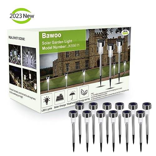 Lampada solare da giardino a LED, 12 pezzi, a risparmio energetico, IP65, impermeabile, in acciaio inox, ideale per terrazze, prati, sentieri e sentieri