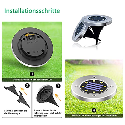 [Luci di cortesia con 8 LED]: 8 luci solari a LED che possono essere installate su sentieri, vialetti, marciapiedi e giardini.