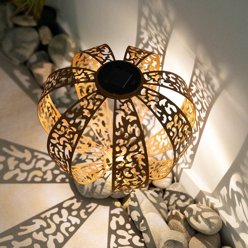 Descrizione Questa lampada solare rotonda (ø 30 cm) con classe di protezione IP44 è un'aggiunta suggestiva al tuo giardino. La parte superiore della terra consente il posizionamento flessibile e semplice della lampada solare color ruggine nel sottosuolo morbido. Un motivo elegante viene proiettato sul pavimento attraverso le superfici laterali che, insieme alla luce bianca calda (3000 Kelvin) della sorgente luminosa a LED a energia solare, possono contribuire a creare un'atmosfera meravigliosa nella tua area esterna. Una sorgente luminosa a LED di alta qualità a risparmio energetico è installata in modo permanente nell'apparecchio di illuminazione. Dettagli apparecchio • tipo di lampada: luce solare• materiale: metallo• colore: ruggine• classe di protezione: IP44• picchetto• incl. 1x 3.7V Li-Ion 300mAh• Diametro x altezza in cm: 30 x 41 • presa: 1x LED• lampadine incluse: Sì• potenza lampada: 1x 0,12 Watt• colore della luce: bianco caldo• temperatura colore: 3000 K• voltaggio: 3V