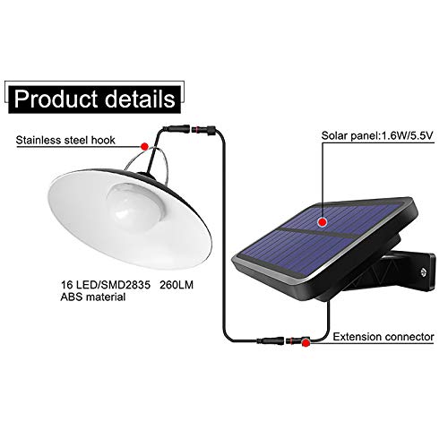 Lampada Solare a Sospensione Per Esterni, 16 Led Lampadario Da Giardino a Shed Lampada Ip65 Lampada a Sospensione Solare Per Interni Impermeabile, Guscio Nero, Bianco Caldo
