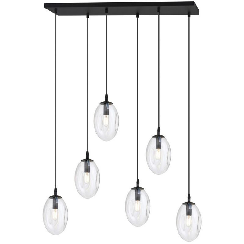 Questa lampada a sospensione è la soluzione perfetta per illuminare con stile la casa o l'ufficio. Grazie al suo design è ideale per la zona giorno e la zona notte. Kit di montaggio incluso, facile da pulire e facile da montare. Colore: Nero Materiale: Acciaio verniciato a polvere, Vetro Set: 1 Dimensioni Prodotto: 70x100x22 cm Peso Prodotto: 4,20 Peso Supportato: - Info Lampadine: 6 x E14, 230V, 10W MAX LED, IP20 Lampadina: Non Inclusa Dimensioni Imballo: 98x29x30 cm Peso Imballo: 5,20 Numero di Colli: 1
