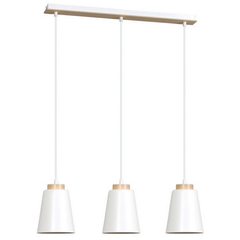 Questa lampada a sospensione è la soluzione perfetta per illuminare con stile la casa o l'ufficio. Grazie al suo design è ideale per la zona giorno e la zona notte. Kit di montaggio incluso, facile da pulire e facile da montare. Colore: Bianco Materiale: Acciaio verniciato a polvere, Legno Set: 1 Dimensioni Prodotto: 66x100x14 cm Peso Prodotto: 2,50 Peso Supportato: - Info Lampadine: 3 x E27, 230V, 10W MAX LED, IP20 Lampadina: Non Inclusa Dimensioni Imballo: 67x21,5x23 cm Peso Imballo: 3,50 Numero di Colli: 1