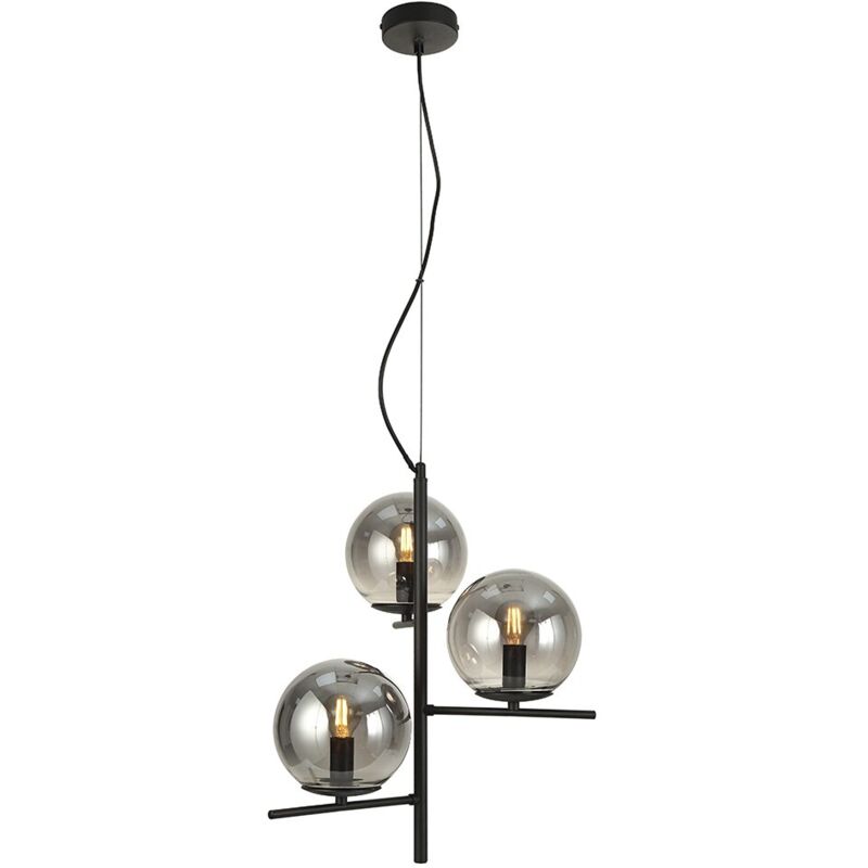 Lampada a sospensione Boston nera fumé 3xE14 Lampada a sospensione decorativa Boston a tre luci. Con un design ispirato al minimalismo dello stile scandinavo, questa lampada da soffitto è perfetta per l'illuminazione decorativa in un soggiorno, in un negozio o in un bar. La sua struttura in metallo nero e i suoi tre paralumi sferici in vetro effetto fumé donano un tocco moderno ed elegante a qualsiasi spazio. Caratteristiche tecniche: - Tipo di lampadina: E14 - Numero di luci: 3 - Materiale: Metallo e vetro - Colore: Nero - Stile: Scandinavo - Utilizzo: Interni - Dimensioni: 50 cm di diametro - Peso: 2 kg - Potenza massima: 40 W per lampadina - Lunghezza del cavo regolabile - Installazione semplice