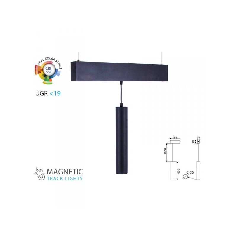 Un Faro Lampada Led COB a Sospensione Carcassa Nera DC 24V 15W 1000lm Bianco Caldo 3000K IP20 Con CRI>90 UGR90 UGR