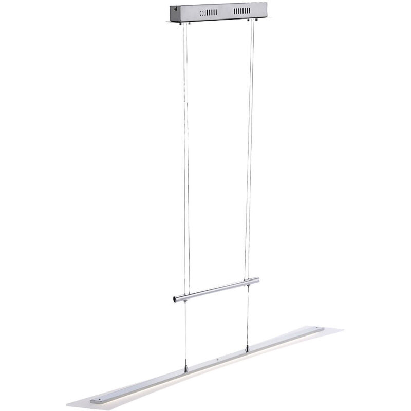 Descrizione Lampada a sospensione di design per il soggiorno. Questa lampada si presenta particolarmente bene sopra il tavolo del soggiorno o della sala da pranzo. Con l'aiuto della regolazione in altezza, la lampada può essere regolata all'altezza perfetta per te. Può essere regolato da 100 a 160 $??Ycm. Rispetto ai normali apparecchi di illuminazione, i faretti a LED consumano solo una minima quantità di elettricità e sono in il consumo anche al di sotto delle lampade a risparmio energetico. Questo protegge l'ambiente e il tuo portafoglio. È inclusa una sorgente luminosa a LED di alta qualità a risparmio energetico! Dettagli lampada • Tipo di prodotto: Lampada a sospensione • Montatura: metallo • Colore: cromo • Paralume: Acrilico satinato • Regolabile in altezza • Grado di protezione: IP20 • Dimensioni LxPxH in cm: 98,5x9,8x100-160 • lampadine: 1x LED • lampadine incluse: si • lampadine di potenza: 1x 23 watt • flusso luminoso totale: 1510 lumen • Colore della luce: bianco caldo