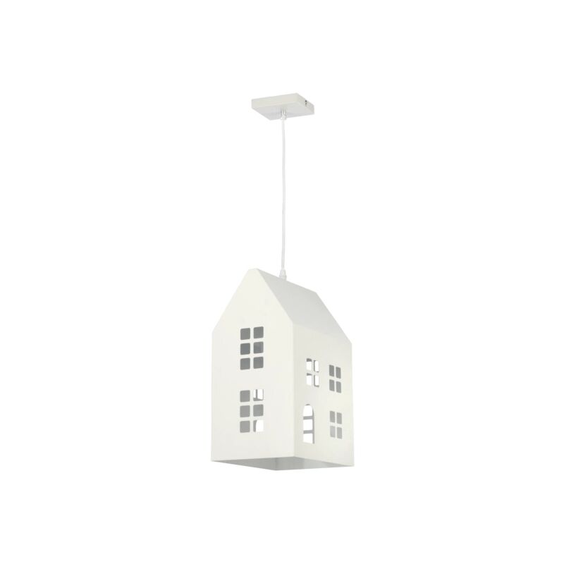 Lampada a sospensione "Casetta" in metallo bianco.Un lampadario originale e di grande effetto, perfetto per la camera dei bambini ma anche per il soggiorno o per locali commerciali.Il cavo di sostegno è trasparente mentre il rosone e il paralume sono in metallo verniciato in bianco.Un elemento unico, che lascerà tutti a bocca aperta.Attacco lampadina, non inclusa, E27Misure 25x18x135 cmLampada disponibile anche in altre colorazioni. Caratteristiche del prodotto Alimentazione 220-240V Attacco lampadina E27 Colore Bianco Dimmerabile No Grado protezione IP20 Lampadina Non inclusa Materiale Metallo Materiale sostegno Metallo Numero di luci 1 Potenza Max (W) 22 Marca Onli Dimiensioni prodotto Larghezza: 0.25 m. Altezza: 1.35 m. Profondit: 18.0 cm. Peso: 2.0 Kg. Dimensioni Imballo Larghezza: 0.0 cm.
