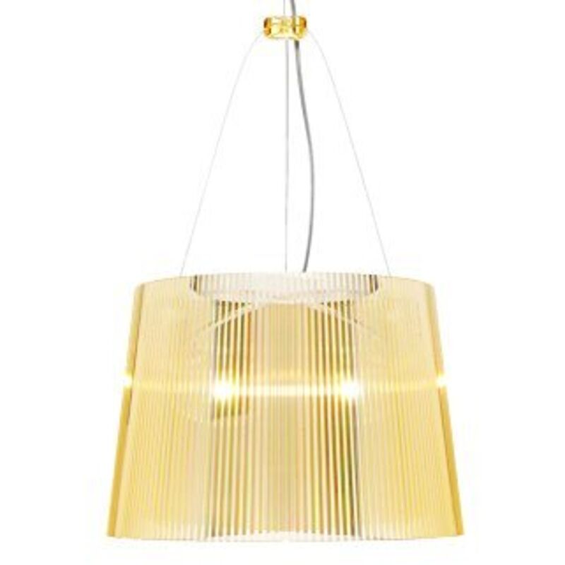 Designer: Ferruccio Laviani 2005 Materiale: 100% policarbonato trasparente Dimensioni: Ø37 x 26 x 45÷230 Fune regolabile Peso: 1.8 kg Lampada a sospensione dalla forma cilindrica e leggera fissata al soffitto con un rosone in policarbonato decorato.