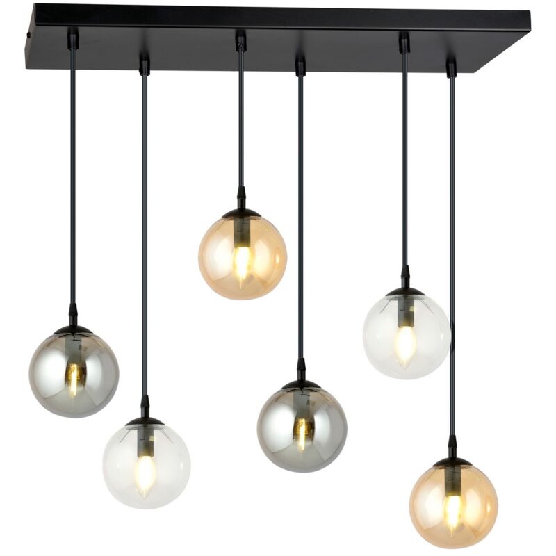 Questa lampada a sospensione è la soluzione perfetta per illuminare con stile la casa o l'ufficio. Grazie al suo design è ideale per la zona giorno e la zona notte. Kit di montaggio incluso, facile da pulire e facile da montare. Colore: Nero, Grigio, Ambra Materiale: Acciaio verniciato a polvere, Vetro Set: 1 Dimensioni Prodotto: 65x120x22 cm Peso Prodotto: 2,80 Peso Supportato: - Info Lampadine: 6 x E14, 230V, 10W MAX LED, IP20 Lampadina: Non Inclusa Dimensioni Imballo: 86x21x37 cm Peso Imballo: 3,80 Numero di Colli: 1