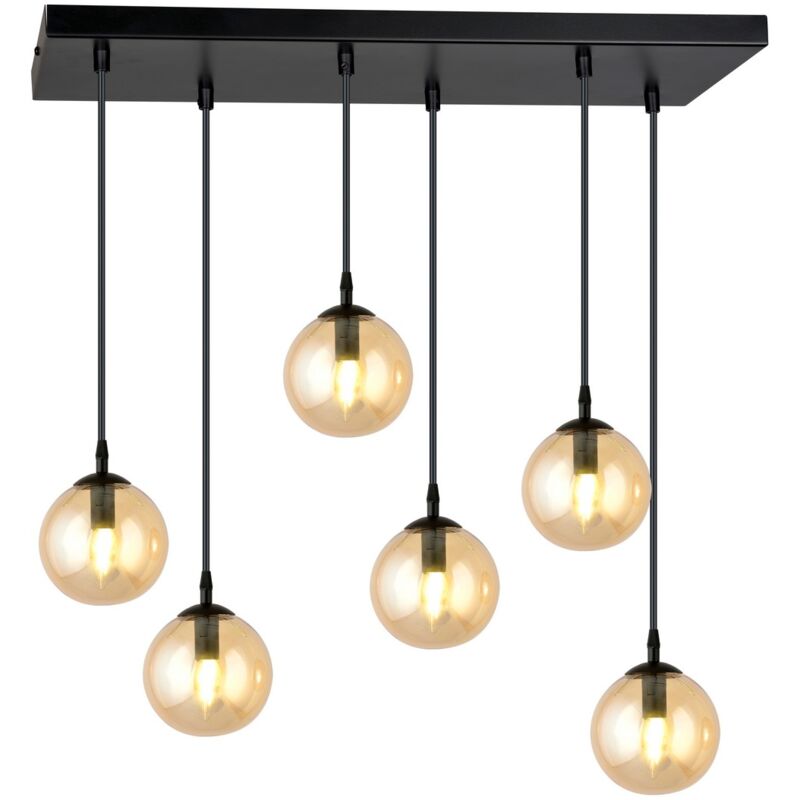 Questa lampada a sospensione è la soluzione perfetta per illuminare con stile la casa o l'ufficio. Grazie al suo design è ideale per la zona giorno e la zona notte. Kit di montaggio incluso, facile da pulire e facile da montare. Colore: Nero, Ambra Materiale: Acciaio verniciato a polvere, Vetro Set: 1 Dimensioni Prodotto: 65x120x22 cm Peso Prodotto: 2,80 Peso Supportato: - Info Lampadine: 6 x E14, 230V, 10W MAX LED, IP20 Lampadina: Non Inclusa Dimensioni Imballo: 86x21x37 cm Peso Imballo: 3,80 Numero di Colli: 1