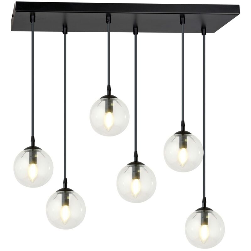 Questa lampada a sospensione è la soluzione perfetta per illuminare con stile la casa o l'ufficio. Grazie al suo design è ideale per la zona giorno e la zona notte. Kit di montaggio incluso, facile da pulire e facile da montare. Colore: Nero Materiale: Acciaio verniciato a polvere, Vetro Set: 1 Dimensioni Prodotto: 65x120x22 cm Peso Prodotto: 2,80 Peso Supportato: - Info Lampadine: 6 x E14, 230V, 10W MAX LED, IP20 Lampadina: Non Inclusa Dimensioni Imballo: 86x21x37 cm Peso Imballo: 3,80 Numero di Colli: 1
