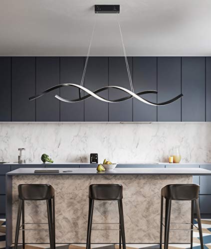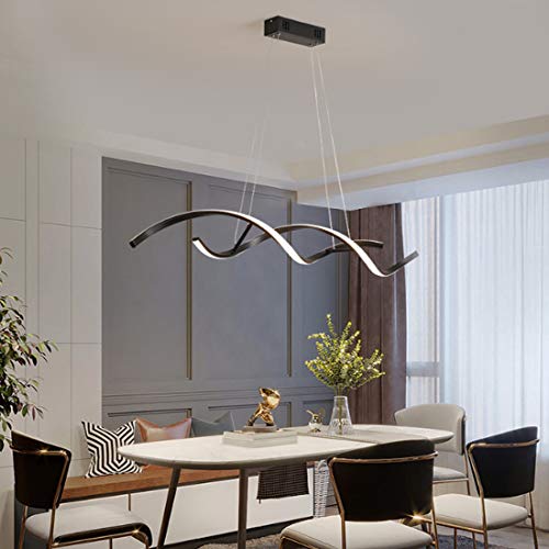 LED lampada a sospensione creativo sala da pranzo dimmerabile con telecomando salotto moderno rettangolo Design spirale lampadario per cucina camera da letto soggiorno ufficio sala studio nero D110cm