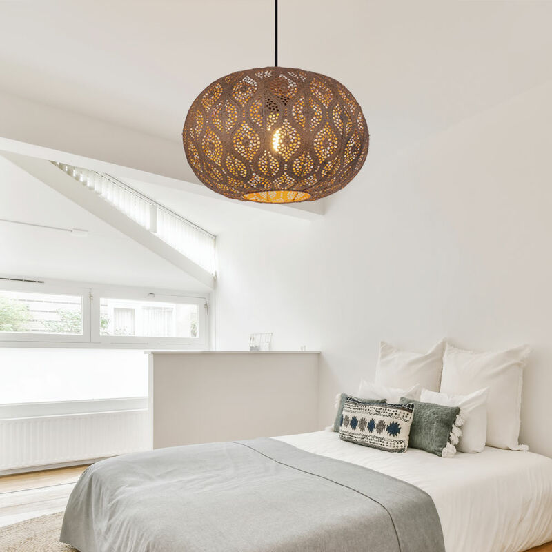 Descrizione Questa fantastica lampada a sospensione è garantita per fornire una grande luce nei tuoi locali. Il paralume rotondo (Ø30cm), cromato, color ruggine con un'altezza di 1,2 m, che pende dalla sospensione ed è decorato con punzonature, crea un look speciale. Utilizzando il telecomando in dotazione, la lampadina LED RGB può essere impostata su diversi colori e garantisce così un'illuminazione d'atmosfera. La fornitura comprende una lampadina LED RGB con telecomando per luce bianca e controllo RGB. Dettagli luce • Tipo di lampada: lampada a sospensione • Materiale: metallo • Colore: color ruggine • Punzonature decorative • Grado di protezione: IP20 • Diametro x altezza in cm: 30x120 • Attacco: 1x E27 • Sorgente luminosa inclusa: Si • Potenza sorgente luminosa: 1x 9 Watt • Flusso luminoso: 1x 806 lumen • Colore della luce: bianco caldo • Telecomando: solo per la sorgente luminosa • Alimentazione: 230V, 50Hz Dettagli lampade • Tipo di sorgente luminosa: RGB-LED • Attacco
