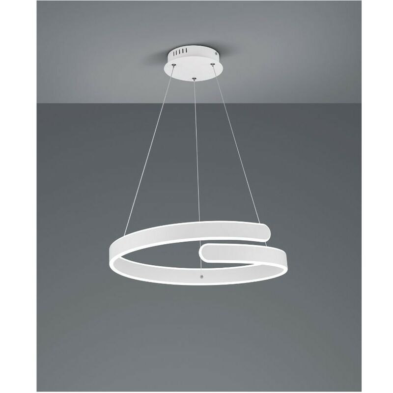 Lampada a Sospensione Design Spirale LED Dimmer 4000k Bianco La lampada a sospensione Parma di Trio Lighting presenta uno struttura in metallo di colore bianco opaco con rosone rotondo e diffusore circolare a forma di spirale. Cavetti regolabili in lunghezza che permettono di variare l'altezza del lampadario in base alle proprie esigenze. Dotata di sorgente luminosa SMD LED da 37 watt, ottima resa luminosa 4500 lumen, temperatura colore 4000k (effetto bianco neutro). Grazie alla funzione dimmer è possibile regolare l'intensità luminosa a diversi livelli, grazie al normale interruttore della luce. Questa lampada non è compatibile con dimmer esterno, la sua luce può variare solo tramite dimmer integrato. Design ultramoderno e accattivante, linee circolari e sinuose, un design moderno che illumina e arreda con stile ed eleganza la vostra casa. Ideale per il vostro soggiorno living, loft, open space, ingresso, corridoio o salotto. Disponibile anche la versione di colore cromo, l'applique