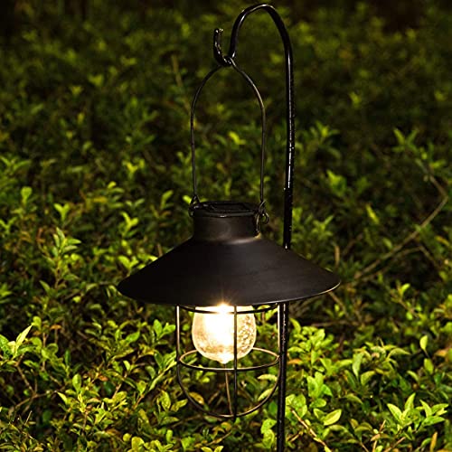 Lampada a sospensione a energia solare, per esterni, vintage, con lampadine a LED, impermeabile, luce solare da giardino, 8.4 pollici, per patio, pathway Tree Decor (1 confezione nero)