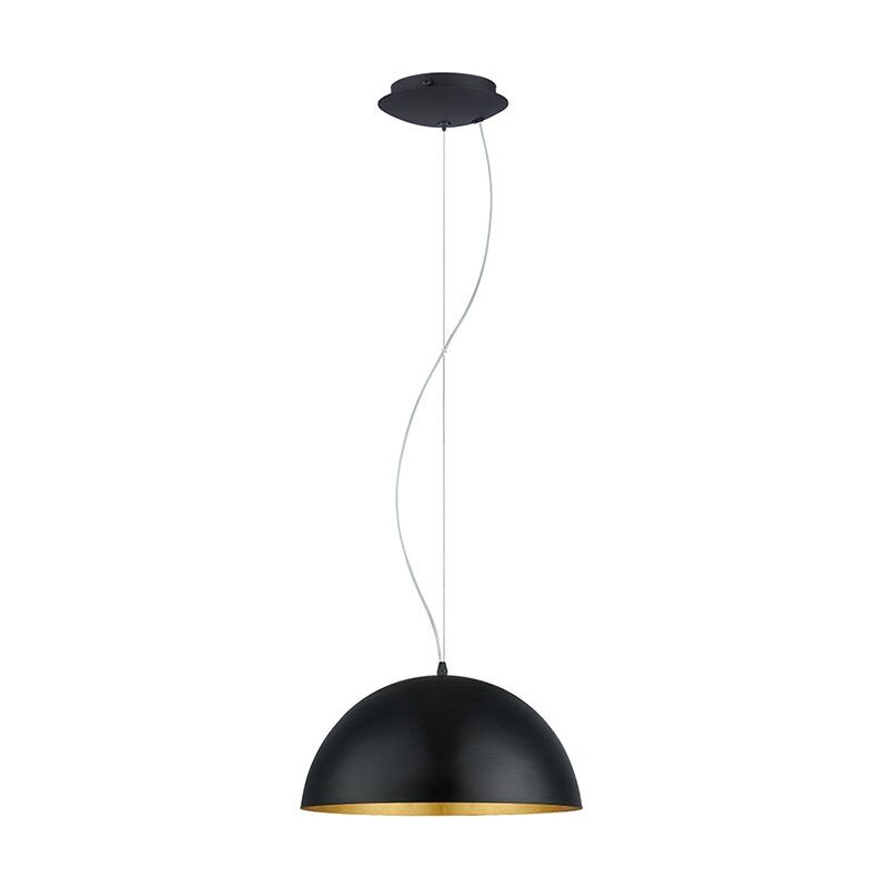 Collezione Gaetano 1 LA LAMPADA CHE ILLUMINA CON STILE E CONTRASTO La lampada a sospensione GAETANO 1 è composta da un paralume rotondo in acciaio nero con interno color oro.. Questa lampada, con un diametro di 38 cm, si adatta ad arredamenti moderni dallo stile industrial e offre una gradevole illuminazione in soggiorno o in sala da pranzo. La lampadina non è inclusa. Può essere utilizzata qualsiasi lampadina con attacco E27.
