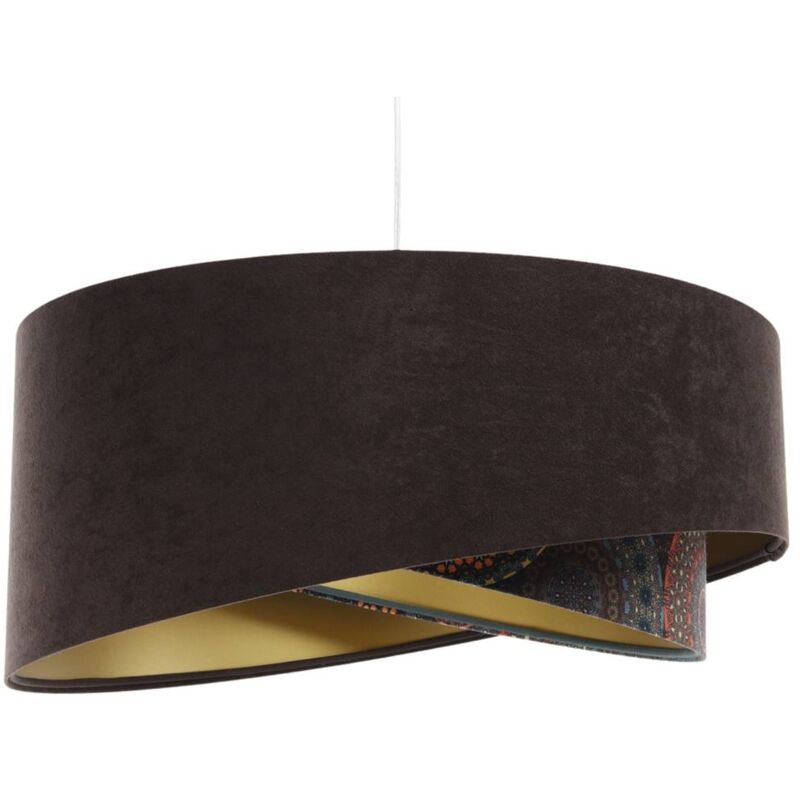 Lampada a sospensione GALAXY E27 max.1X60W velluto con stampa tessile marrone, multicolore, interno oro H: 105cm Ø50cm dimmerabile Dimensioni in mm: Altezza: Altezza totale: 1050;