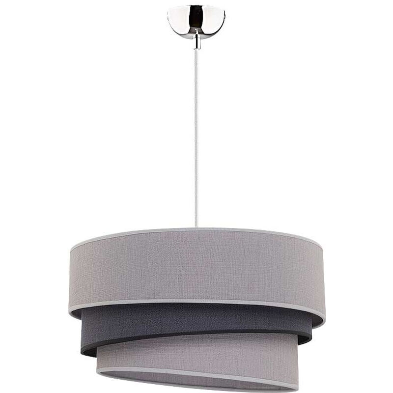 Dettagli del prodotto Materiale: Metallo, plastica rivestita in tessuto Dimensioni: larghezza: 450 mm, profondità di sospensione: 1200 mm, lunghezza: 450 mm, diametro: 450 mm Attacco: 1x E27 fino a 40W Classe di protezione dagli spruzzi: IP20 Colore: Argento, Grigio Peso: 1190 grammo Descrizione del prodotto Eccezionale lampada a sospensione con un paralume a tre pezzi in diverse tonalità di grigio;