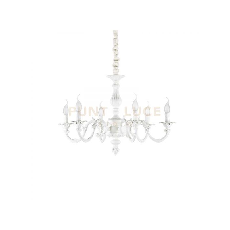 Lampada a sospensione con rosone e montatura in metallo con bracci in fusione. Rifinito con vernice opaca bianca. Copricatena in velluto.