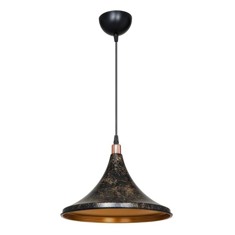 Lampada a sospensione Kalyon metallo nero oro ASZ1650 Lampada a sospensione Kalyon metallo nero oro ASZ1650. Caratteristiche: Materiale: metallo Colore esterno: nero oro Colore interno: oro Altezza: 60 cm Larghezza: 30 cm Altezza paralume: 22 cm Attacco lampadina: 1 x E27 Watt Facile da pulire