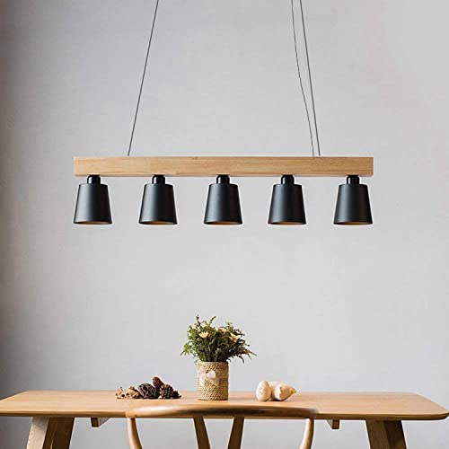 ZMH Lampada a sospensione in legno Lampadario moderni - Nero lampadario dimmerabile altezza regolabile E27 luce tavolo da pranzo in ferro per soggiorno ufficio salotto e ristorante