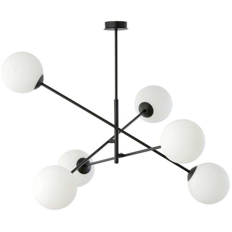 Questa lampada a sospensione è la soluzione perfetta per illuminare con stile la casa o l'ufficio. Grazie al suo design è ideale per la zona giorno e la zona notte. Kit di montaggio incluso, facile da pulire e facile da montare. Colore: Nero, Bianco Materiale: Acciaio verniciato a polvere, Vetro Set: 1 Dimensioni Prodotto: 102x51x102 cm Peso Prodotto: 4,40 Peso Supportato: - Info Lampadine: 6 x E14, 230V, 10W MAX LED, IP20 Lampadina: Non Inclusa Dimensioni Imballo: 60x50x60 cm Peso Imballo: 5,40 Numero di Colli: 1