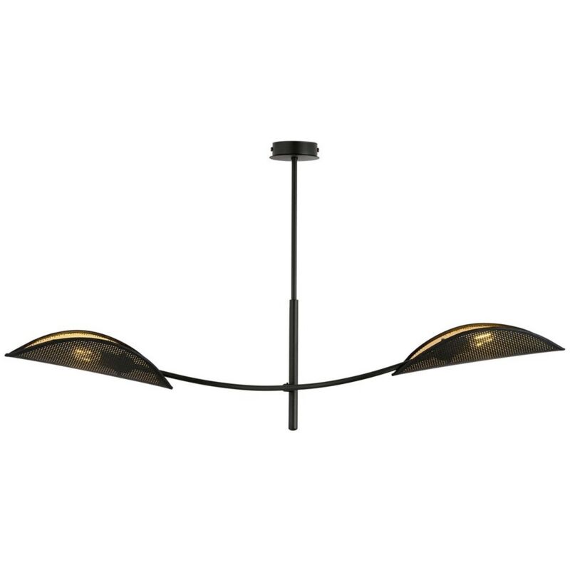 Questa lampada a sospensione è la soluzione perfetta per illuminare con stile la casa o l'ufficio. Grazie al suo design è ideale per la zona giorno e la zona notte. Kit di montaggio incluso, facile da pulire e facile da montare. Colore: Nero, Oro Materiale: Acciaio verniciato a polvere, Tessuto Set: 1 Dimensioni Prodotto: 103x60x11 cm Peso Prodotto: 2,20 Peso Supportato: - Info Lampadine: 2 x E14, 230V, 10W MAX LED, IP20 Lampadina: Non Inclusa Dimensioni Imballo: 97,5x28,5x26,5 cm Peso Imballo: 3,20 Numero di Colli: 1