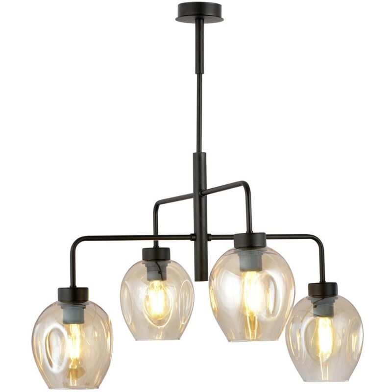 Questa lampada a sospensione è la soluzione perfetta per illuminare con stile la casa o l'ufficio. Grazie al suo design è ideale per la zona giorno e la zona notte. Kit di montaggio incluso, facile da pulire e facile da montare. Colore: Nero, Ambra Materiale: Acciaio verniciato a polvere, Vetro Set: 1 Dimensioni Prodotto: 63x75x63 cm Peso Prodotto: 4,00 Peso Supportato: - Info Lampadine: 4 x E27, 230V, 10W MAX LED, IP20 Lampadina: Non Inclusa Dimensioni Imballo: 60x60x52 cm Peso Imballo: 5,00 Numero di Colli: 1