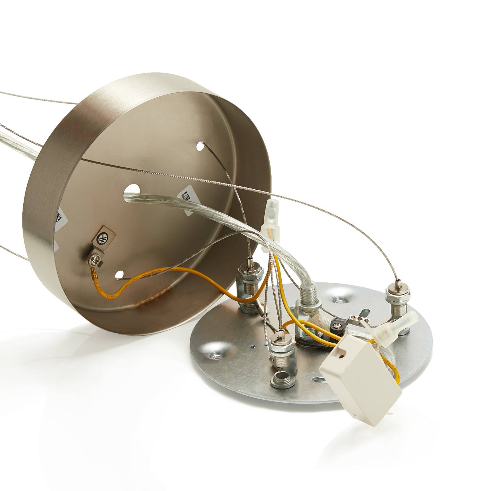 Raffinata lampada a sospensione Maserlo con paralume di tessuto color cappuccino Con questa lampada a sospensione si creano accenti di stile. Il paralume rotondo, alto 22 cm, è in tessuto di color cappuccino all'esterno e dorato all'interno. Soprattutto con un arredamento di colori chiari, questa lampada costituisce un bel colpo d'occhio. La sospensione è di 110 cm.