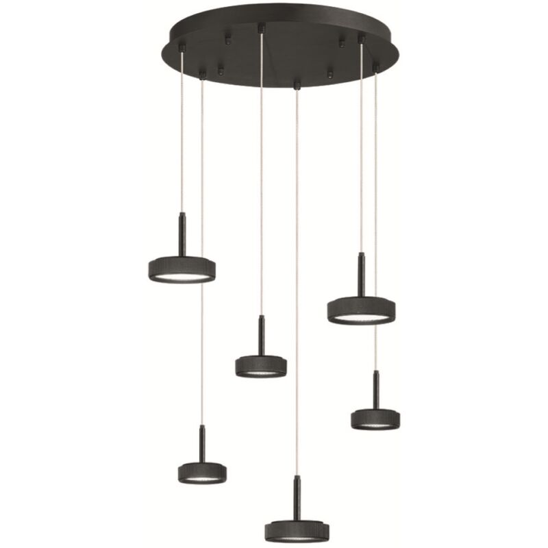 Lampadario a sospensione NINA con led integrato, interamente in metallo verniciato. Cavetti regolabili in lunghezza. Una lampada dal design moderno, perfetta per arredare e illuminare ogni spazio della vostra casa con un tocco di originalita'. CARATTERISTICHE Colore: Nero Materiale: Metallo Tipologia: Lampada a sospensione Modello: 6 luci Altezza max: 212,5 cm DIametro: 45 cm Dimmerabile: Si Illuminazione: LED integrato Potenza: 45W 2700-4500 LM Input: 220-230V Colore luce: 3000K
