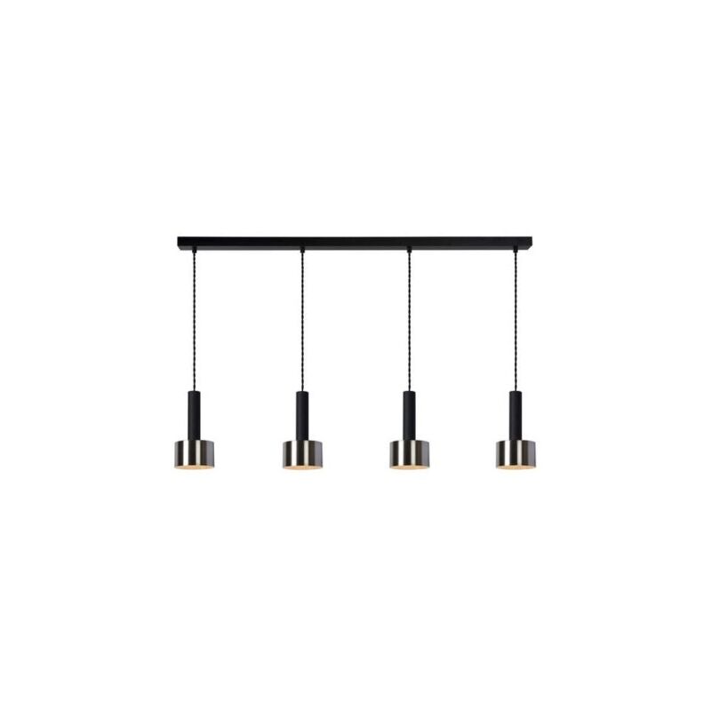 Produttore: Lucide Nome: TEUN Simbolo: 45471/04/30 Parametri altezza (mm): 400-1500 altezza paralume (mm): diametro (mm): diametro paralume (mm): larghezza (mm): 1180 profondità (mm): 130 numero di sorgenti: 4 tipologia di stelo: E27potenza sorgente max: 40Voltaggio: 230V Sorgente inclusa: Non dimmerabile: Si, utilizzando lampadina dimmerabile.colore: nero, argento e sfumature argentomateriale: acciaioIP: 20