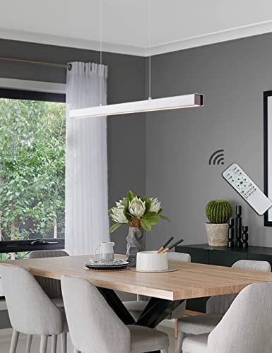Lampada a LED a sospensione moderna dimmerabile con telecomando Design lineare Pendenti da tavolo e luci a sospensione Altezza regolabile per la sala da pranzo Lampadari da ufficio (L120cm, Bianco)