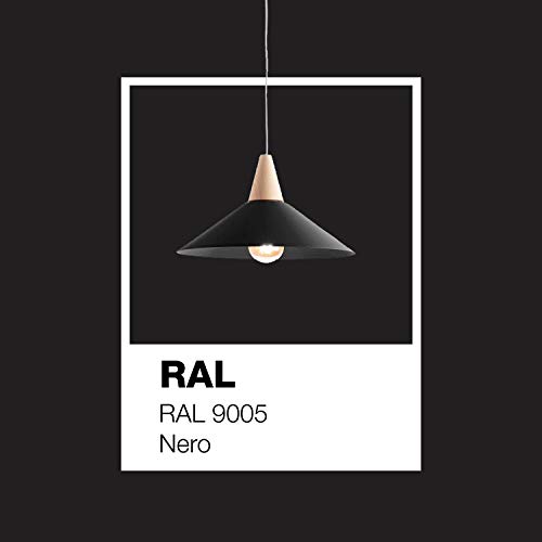 Lampada a sospensione moderna in metallo rifinita con finitura a scelta e dettaglio in legno, attacco E27 (Nero, 40cm)