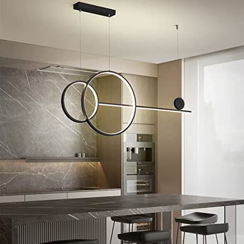 Lampada a sospensione LED moderna tavolo da pranzo 54W Dimmerabile con telecomando Lampada da tavolo da pranzo Regolabile in altezza per sala da pranzo Lampadario soggiorno Luci della casa,Nero