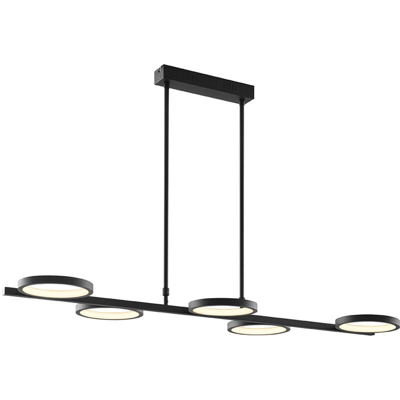 QAZQA Lampada a sospensione moderna nera con LED dimmerabile in 3 fasi a 5 luci - Vivé La lampada a sospensione Vivé si inserisce perfettamente in un interno moderno. La lampada è realizzata in alluminio e acciaio ed è rifinita in nero. I 5 punti luce rendono questa lampada un vero e proprio colpo d'occhio. L'illuminazione a LED della lampada è integrata nel corpo illuminante. In media, il LED dura 30.000 ore di accensione. La lampada a sospensione consuma 30 watt. Con un'elevata emissione luminosa fino a 1050 lumen, la lampada a sospensione è adatta per un'illuminazione funzionale. Questa lampada a sospensione può essere dimmerata in 3 passaggi. Ciò consente di dimmerare la Vivé dal 30% minimo per un'illuminazione d'atmosfera al 100% per un'illuminazione funzionale. I tuoi interni mancano ancora di un po' di atmosfera? Allora la Vivé è la scelta perfetta. Portalampada: (non sostituibile) LED . Max 5 x 30 W, 230 V Adatto a: LED Voltaggio: 220V/230V IP Classe di protezione: [IP20] A