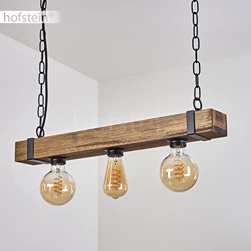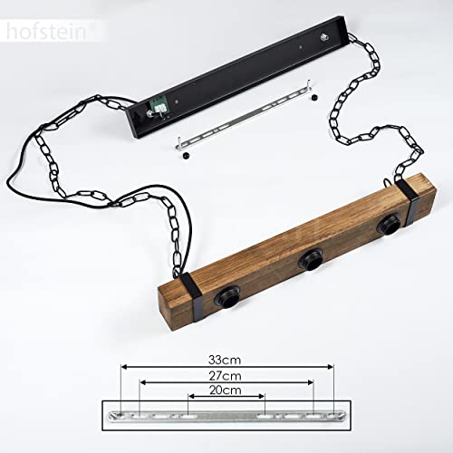 Lampada a sospensione Montgomery,lampada a sospensione in metallo/legno in nero, lampada a sospensione regolabile con asta in legno e anelli di catena, altezza massima 123 cm,3 x E27,senza lampadina/e