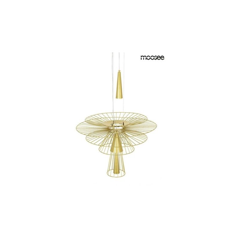 Lampada a sospensione MOOSEE SESTO oro. Il design elegante e unico si inserisce perfettamente nello stile glamour. Una composizione di fili metallici disposti a cascata utilizzando due fonti luminose dirette verso il basso. L'illuminazione del paralume superiore è riflessa dal cerchio piatto al centro apparecchio, che disperde il flusso luminoso. L'aspetto moderno ed elegante della lampada renderà ogni interno unico. Luce: 2 x GU10 max. 5 W (non incluso) Apparecchio: altezza 250 cm / larghezza 60 cm / profondità Paralume 60 cm: altezza 48 cm / larghezza 60 cm / profondità 60 cm Montaggio: altezza 3 cm / diametro. 15 cm Cavo: 200 cm Installazione: installazione a soffitto Peso netto: 4 kg Dimensioni imballo: 90 cm / 65 cm / 20 cm.