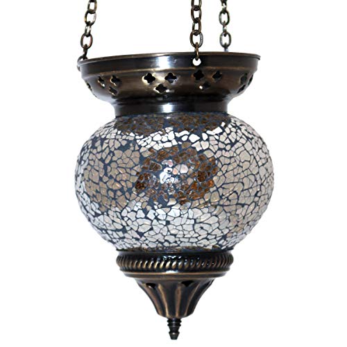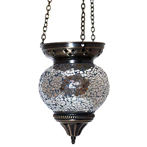 Lampada a sospensione a mosaico, lampada a sospensione, per esterni, in vetro, orientale, a mano, decorazione - Gall&Zick (nero/argento)