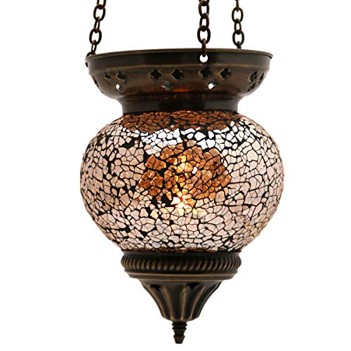 Dimensioni della lampada: altezza 18 cm, diametro 9 cm. La lampada ha una Catena lunga 35 cm con anello per appenderla.