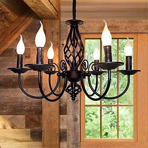 Lampada A Sospensione Ombra Chandelier Retro Restaurant Classic Candela Lampadario A Sospensione Regolabile in Altezza E14 Luci Del Pendente Ferro Battuto, Sospensione Lampadari,Nero,3 heads /50cm