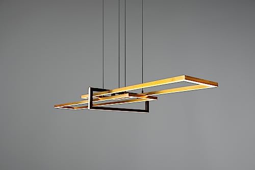 Lampada a sospensione a LED Salinas in metallo ottone / nero opaco. Il pendolo ha una larghezza di 110 cm. L'altezza può essere regolata all'infinito fino a un massimo di 150 cm