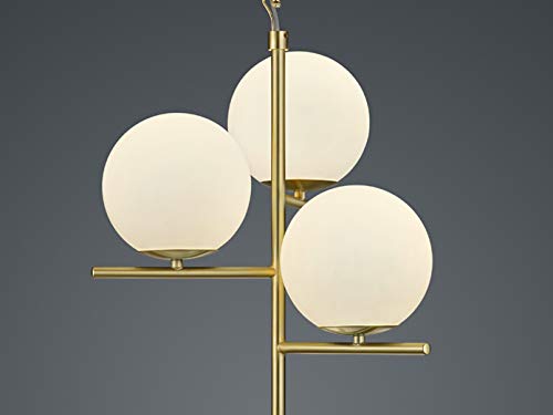 Lampada a sospensione a LED in ottone opaco con sfera in vetro opalino, 3 attacchi E14, illuminazione interna esclusiva