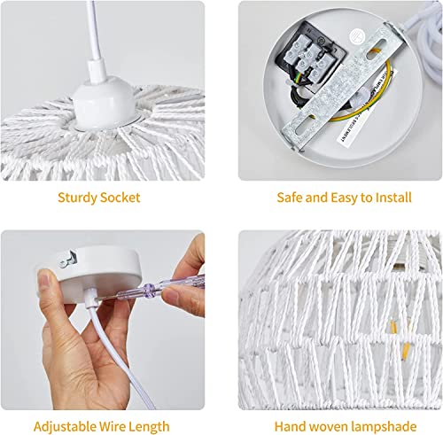 Lampada a sospensione, paralume in corda intrecciata, paralume moderno in stile semplice, lampadario fatto a mano, base E27 per soggiorno, camera da letto, ristorante, caffetteria, casa da tè (bianco)