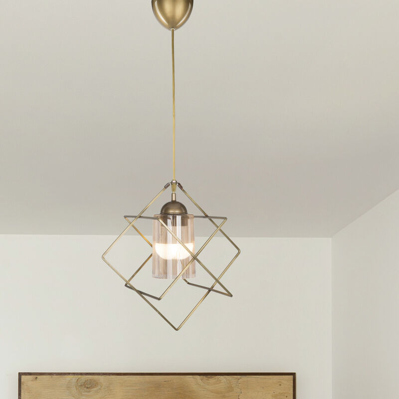 Lampada a sospensione Il modello rappresenta lo stile industriale che si abbina perfettamente ad un arredo moderno prestando personalitá originale all'ambiente. Descrizione: - lampada da soffitto con paralume a poligono - sorgente luminosa coperta di un cilindro traslucido - posizione ideale è a centro stanza Dati tecnici: - Attacco lampadina: 1 x E27, max. 20W (lampadina esclusa) - Tensione: 230V, 50Hz - Tipo di interruttore: a muro Materiale: - Paralume a gabbia: Metallo - Cilindro: ABS plastica Colore: Bronzeo antico Dimensioni: - Altezza completa: 62 cm - Paralume a gabbia (AxL): 37 x 37 cm La spedizione include: 1 x Lampada da soffitto [senza lampadina] Prodotto di [lux.pro]