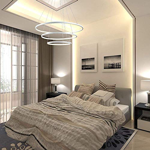 LED Lampada a sospensione Luce pendente Moderno Il giro Illuminazione a soffitto Interno Lampadario Contemporaneo Plafoniera (Luce Bianca, 3 Anello Bianco 20cm 40cm 60cm)